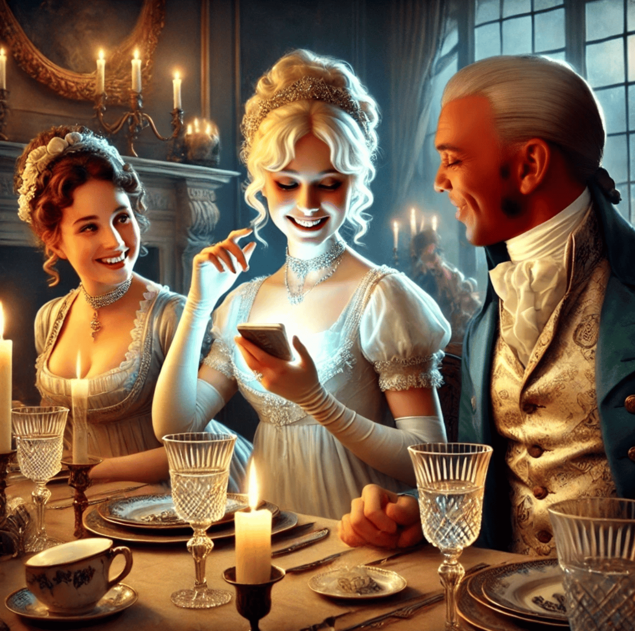 At a lively dinner party, Penelope joined Lady Beatrice and Mr. Whitfield mid-debate.